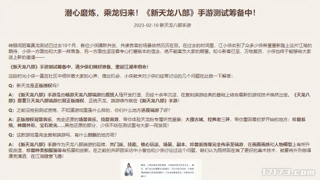 《新天龙八部》手游在拿到版号后,也在官网发布了新测试的预告,当前游戏官方已经在筹备最新一轮的测试,预计在不久后便会有新的消息。