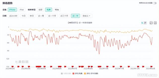 数据显示,《香肠派对》虽然一直以来都并非同类型中最火的一类,但它凭借差异化的画风和内容为自己赢得了一片稳定的市场,近年来游戏在人气和收益上的波动都相对较小,稳定处于中间位置。