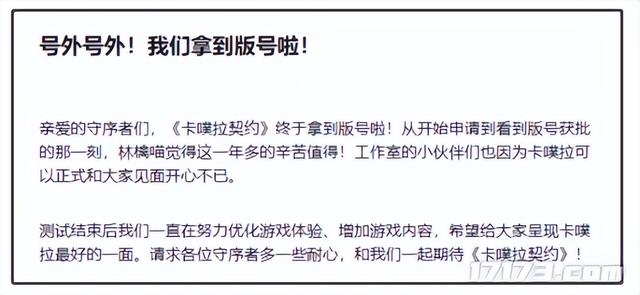 《卡噗拉契约》官方在拿到版号后也在第一时间与玩家分享了喜讯,同时也在积极优化游戏体验,为游戏增加更多内容,预计还要等待一段时间才能够真正上线测试。