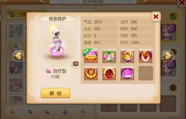 而同级别普通的助战伙伴,属性大约是这样的↓(以观音菩萨为例)