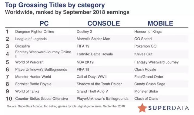当然,全球现象级游戏《堡垒之夜》也为数字版主机游戏贡献了不少销量。最终,SuperData的9月全球数字游戏市场报告排名如下: