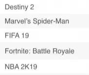 据排名显示,本期主机榜单Top5分别由《命运2》、《漫威蜘蛛侠》、《FIFA 19》、《堡垒之夜》和《NBA 2K19》获得。与上期对比变动较大,新晋了3款游戏。