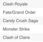 Top6-10的位置,则分别是《皇室战争》、《FGO》、《糖果传奇》、《怪物弹珠》和《部落冲突》。从5月起,这几款游戏同样一直占据Top6-10的位置,只是排名有所变换。