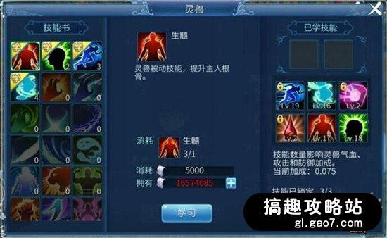 这里我们就要请来金陵柳麒麟给我们解答了(什么?!你说柳麒麟请假了,来不了?)。咳咳…下面还是我来说下吧,没错,就是在金陵柳麒麟那里用银票购买7种增加灵兽属性攻击的技能书来冲格子,当我们冲满6格技能的时候,我们再开始给灵兽打技能。