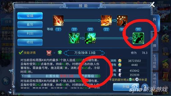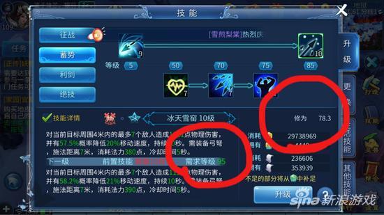 2。技能升级所需等级高的技能加的修为多,越到后期越多。简单粗暴,而且你把一个技能加高等级对自己的实力也是单向提升。