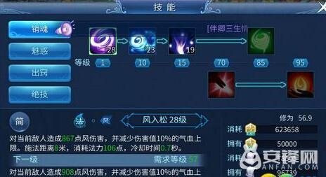 极天之邪:zēng加命中破盾,免疫变狐,不易被推拉,并且免疫变狐,增加远志技能,造成大范围伤害,hái有几率弹射,但是我没有实测,从介绍上来看,伤害很可观,一级就有5000+的伤害。