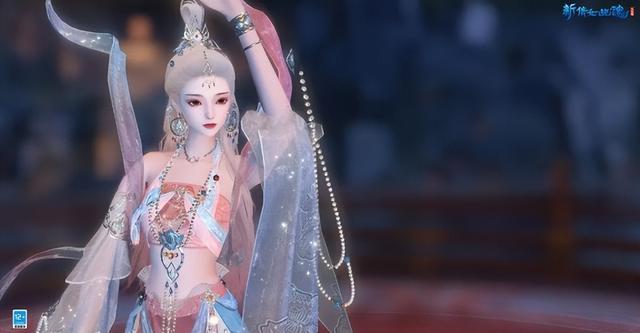 仔细一看,这一套时装确实很有韵味,一袭半透羽纱裙,很是轻盈,有着莲花珍珠宝石点缀,十分高级。而且还有纱质的飘袖,随风飘荡,宛如仙女一般,还有露脐设计,将女子的曼妙身材完美勾勒了出来,尤其是那水蛇腰,真的爱了爱了,也怪不得那么多玩家捧着自己女鹅的照片各种欢喜啦~