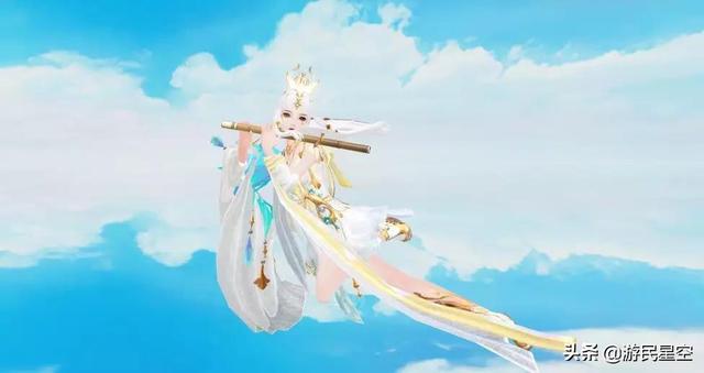 再如与新门派同期推出的新职业影灵,能够一职三变,可男可女可妖怪。其中女角色采用的是太阳神鸟转世金晔公主的设定,在服饰风格中也含有金沙文明的元素。比如在服装和外观上,采用了轻盈的薄纱材质,前短后长与不对称袖摆的衣服设计营造出曲径通幽的层次感,周身的蓝绿色既神秘又典雅,同时头部配以太阳神鸟发冠颇具王族风范。