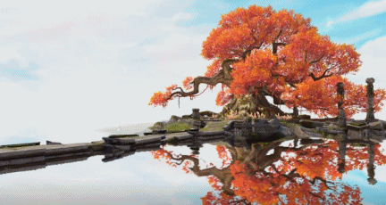 首先要体验的,便是新门派场景金沙镜。不管是从美术设计还是单纯外显层面来看,金沙镜场景的表现都堪称惊艳,整个场景的主体是一汪巨大的镜湖,湖中心栖息着一株连香古树,景色唯美写意。这样的场景设计风格,在《倩女幽魂手游》中是从未出现过的,不仅如此,研发团队还运用多项全新技术,为金沙镜加入了湖面反射、昼夜系统等多种华丽的动态效果。