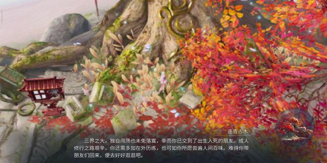 游戏正是在此背景上原创了新的世界架构和故事背景,一个遗世仙镜就此展现在我们面前。策划可以说是大开脑洞,将新门派融入了一幅绝美的画作。在一片广袤无垠的晶莹镜湖上,一棵连香树在天地间浑然一体。不远处的乌木林和白木林暗示着这里拥有着一段不平凡的故事。