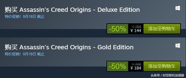 《刺客信条:起源》豪华版及黄金版同样半价——时空联机加速器
