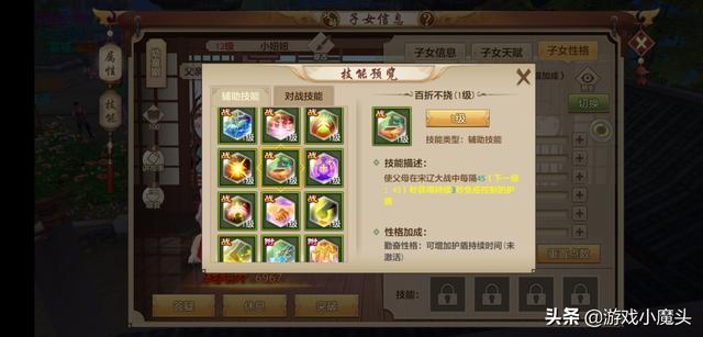 完成活跃可以获得经验丹,升级子女,增加属性,开启技能,还可以通过学习提升子女的性格等,而子女的性格也会影响子女技能的使用频率等。