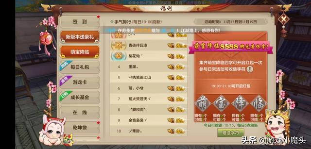 2、另外13号还会开启一系列萌娃活动,更有8888绑定元宝让你拿