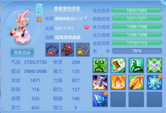 最后一位登场的是我们的前期就能拥有的新手宠霜狼,一身粉色鬃毛柔顺光滑,四肢黝黑孔武有力,白色尖爪锐不可当,再加上头顶的蓝色独角,无一不彰显出这只霜狼的霸气。整体看起来十分可靠,是你征战三界的一位强力打手。但是这位玩家给它起名“恶犬”,难不成想用它去看家护院?内有恶犬,小心莫入!