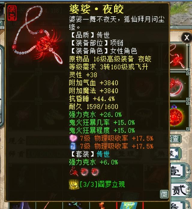 许多队伍带女鬼,其中有很大一部分原因是为了针对女人,众所周知,带了赤练套装的女人,毒法伤害可以爆炸到,而魅惑法术可以提升目标单位的2.8944万抗毒伤害,如果再点满魅惑天赋的情况下,被魅惑的单位可以抵抗3.1968万的毒伤害,再加上自身魅惑法术的强度,对于抵制女人的毒伤害,女鬼可以起到很大作用,在防守力得到增强的同时,女鬼还可以兼顾输出,这也是女鬼的一种优势,来看下这位女鬼的出装。