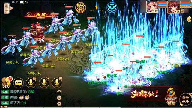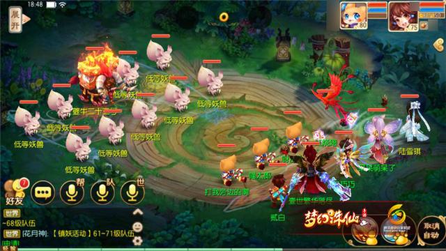 第一关:黑风怪和9只风尾小妖。黑风怪皮厚攻高,而且是可以攻击所有角色与宠物的水攻技能,不过黑风怪也扛不住战力不错的两个物理职业的集火输出。其余小怪会放各种群攻技能和单攻技能,后排小妖基本都是使用合欢技能,第一回合出手打出的伤害很高,但放过之后会进入休息状态。