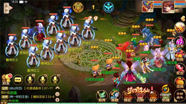 第五关:兽神和9个兽神近卫,兽神会使用烟雨断肠或移花接木等技能,兽神近卫全部是单体普攻,概率进行追击攻击。