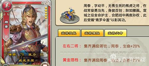 黄金搭档:集齐满级周泰,韩当,伤害+23%。