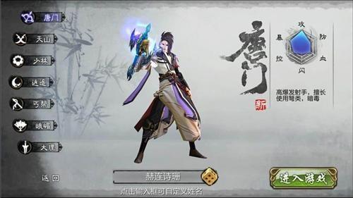 唐门-----流淌罗刹血的猎杀者,鬼魅如影!身为武林中的名门望族,唐门族人行事诡秘,霸气洒脱。无比精准的箭弩配上洞察万物的鹰眼,一经出世便将江湖的平静瞬间打破!六大门派慎重其事,或许职业平衡将有所改变!而有幸目睹唐家儿郎身姿的人,均惊叹那如黑豹般的速度,以及行动中沉稳之余带有的轻巧之感!