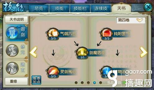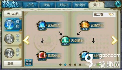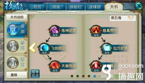 天书加点应该没啥太大争议,遵循原则,优先第五卷,然后第四,然后三,以此类推。当然这个原则是概括,不一定要全部遵循,第四卷的气御六合用处应该没第三卷的一些技能用处大,所以只是在有剩余的情况才会回来加这个。