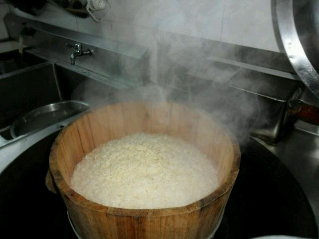3:甑中的糯米熟了之后,再用小盆子把糯米打出来,一次只有一个石宽那么大,不然也不好打,也不好翻转。图片很好的示意。小时候,我们看到糯米出来后,就要去品尝一下,看看味道如何。