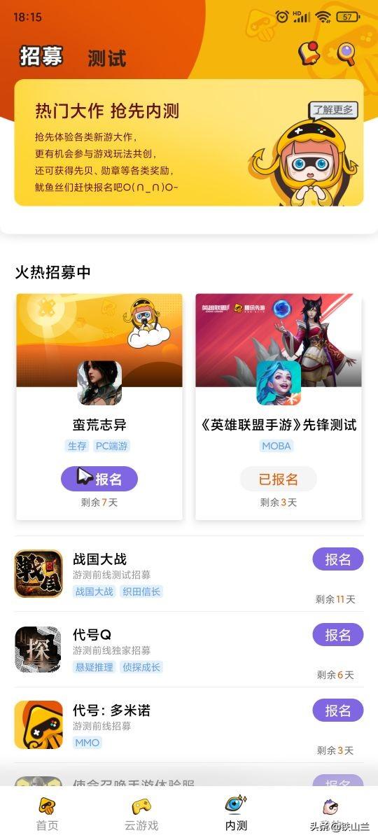 1,在个人内测列表中,找到《英雄联盟手游》测试,点击下载即可!