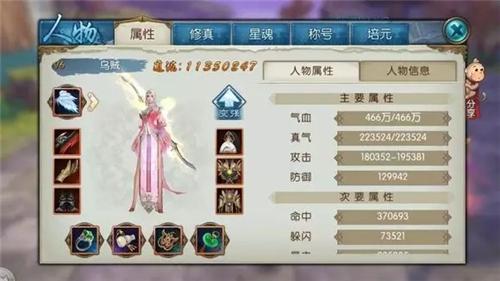 c、优先升级“攻、防、血、爆伤”,其次升级“真气、命中、闪避、暴击、爆抗”。