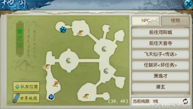 任务地点:青云山中间圆盘npc萧逸才旁边