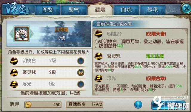 大招-神剑/七劫/绝圣、华闪、剑心通明、天尊法身、真元护体这几个技能是最强的,所以最好的灌魔技能:大招必备,华闪,剑心通明这三个。