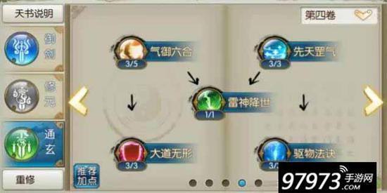 一重破魔点满 唤雷点满 被动 五气朝元点一diǎn(因为天书一卷过度内气充盈) 被动技能养生主点满。