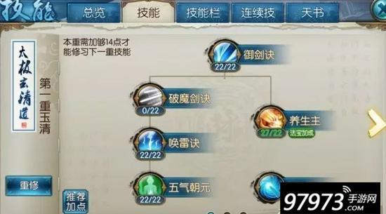 注:满级后,还有10点技能点数,把神剑御雷真诀点满,其余9点加到真元护体即可。