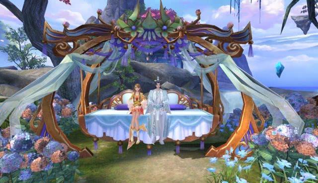 最后的重头戏自然是物件交互啦。在张灯结彩热闹非凡的河阳城里,仙友们不仅可以与cp一起在此欣赏浪漫美景,还可与座椅、凉亭、秋千、古筝、空灵鼓等道具进行交互,对坐饮茶,或抚琴一曲,来自古典浪漫的最终暴击。