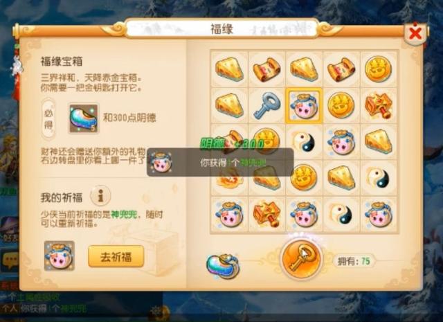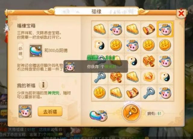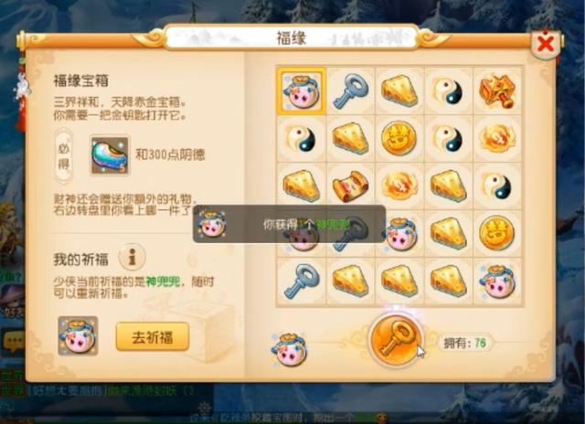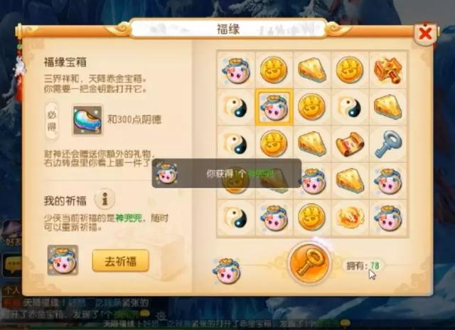 神兜兜+1,看来神机道长还是比较会疼人的,祈福很有必要啊!如果小伙伴们也准备开宝箱,一定要记着去找他哦~