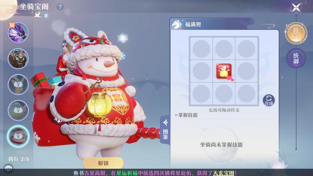 随着《梦幻新诛仙》手游第一届冰雪节的正式上线,游戏中也更新不少全新的内容,除了各种有趣的冰雪节活动和超值礼包之外,这一次游戏中还推出了全新的坐骑“福满兜”。那么对于这只全新的坐骑,我们要如何获取,又要怎么对其进行培养呢?下面我们就来进行一个详细的介绍吧!