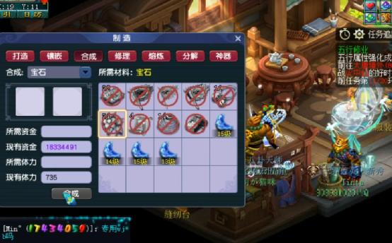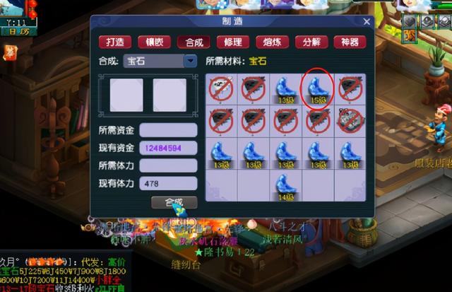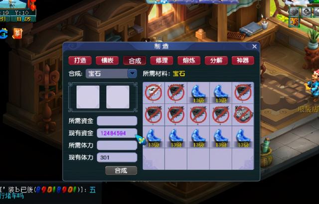 玩家可以在铁匠铺里将两颗宝石合成为一颗高一级的宝石,合成时需要满足以下条件: