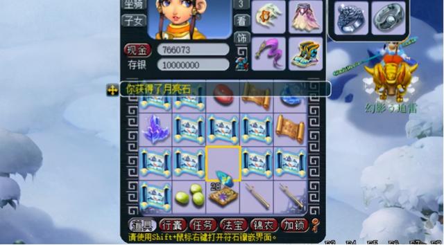 第4张、第5张、第6张北俱芦洲,分别挖到了60级晶石、100级配饰书、月亮石。
