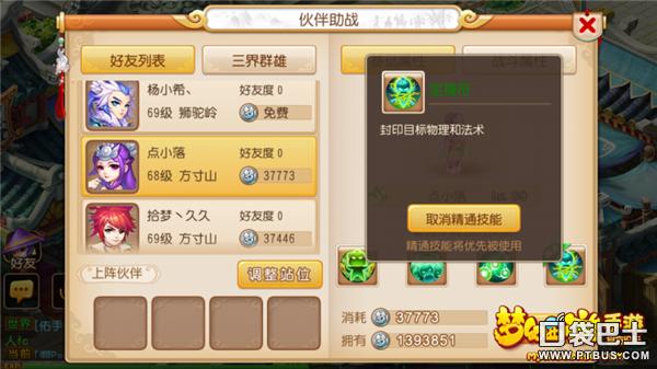 2.排行榜中上的豪友,如何弥补紫霞仅仅控制法术的问题,找到定身符的封印小伙伴呢?在排行榜中找一找方寸的“壕”友们,设置这些好友小伙伴助战精通技能为定身符,这样就能达到完美控制。但是这样就可能会面临自己封系小伙伴的速度慢于对方。
