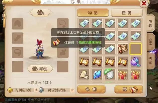 第一张高级藏宝图的位置是建邺城,一手下去,直接挖到了上古妖怪留下的宝物。一般出这种提示,就是出货了。果不其然,一本高级突进到手了。不过高级突进这本高兽诀的价格并不是太高,也就是说他挖到高级突进其实也有些入不敷出。不过问题不大,因为后面还有不少高级藏宝图等他去挖,奇迹一定会出现的。