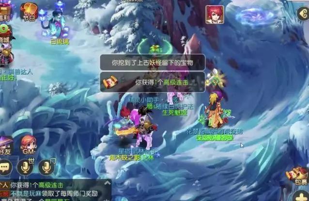 前面三张高级藏宝图虽说都出了高兽诀,从侧面来看,他的运气似乎还不错。就是出的高兽诀不太给力,到了挖第4张高级藏宝图的时候。画风突变了,大雪山的高级藏宝图果真不一样!一手下去,高级连击到手,终于回了一些血。