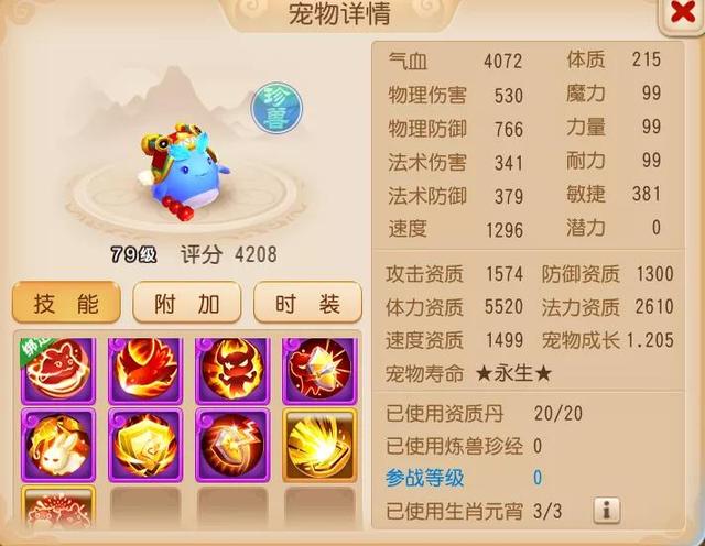 看看这炸裂的资质——1574的攻资、5 520的体资、1300的防资、1499的速资,还有1.205的成长,这样的咕噜竟是一只配速?