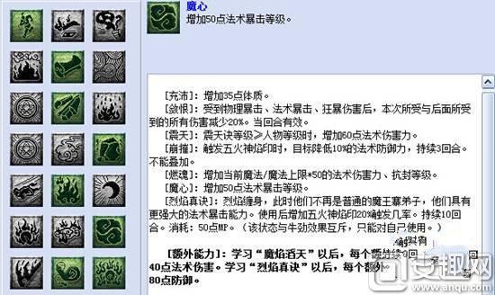 经脉镶嵌:魔灵、灼炎、狂砂、熔骨、狂啸、降临、焚天裂地。