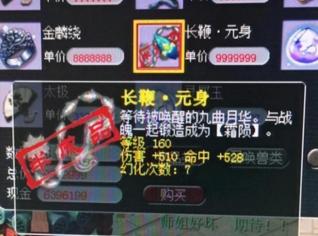上面是一把160级武器的元身,这把160级武器元身的伤害属性已经拿到了510,快接近元身的伤害属性上限了,所以上面的这把武器在属性上来判断是可以打造的,但是现在这一把接近满伤害元身摆999万都没有人要,原因就是这把武器的造型,因为上面的这把武器是鞭子,现在能够使用鞭子的门派要么是魔族,要么是人族的女性角色,这样就只能玩大唐官府了,而且这把武器还没有任何双加,想要逆袭,鉴定的时候就必须出专用,所以上面的这把武器才这么不值钱的。