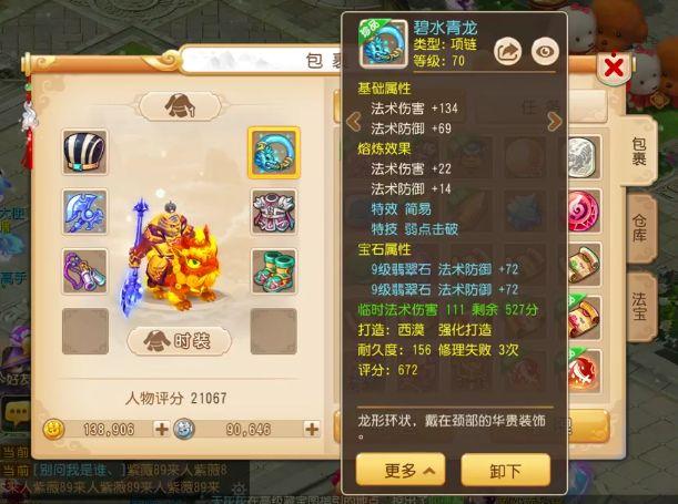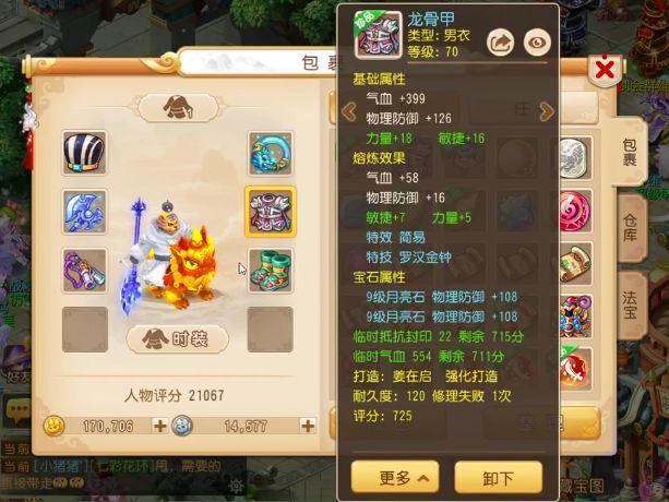 衣服的话也是一件70级简易特技的衣服,特技是罗汉金钟,相信玩法系门派的玩家都特别讨厌这个特技,本来爆炸的输出结果伤害那么低。这件衣服厉害的地方不止简易特技,力敏双加也有46点,非常的暴力!