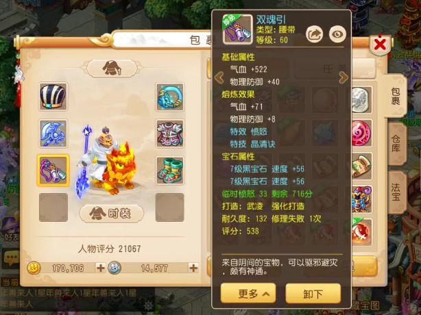 腰带的话是一件60级的愤怒特技腰带,特技是晶清诀,解除我方全体异常状态,并恢复一定的气血,需要的愤怒值有点多,但是问题不大,这不是还有个愤怒的特效吗,释放特技减少所需的愤怒值。