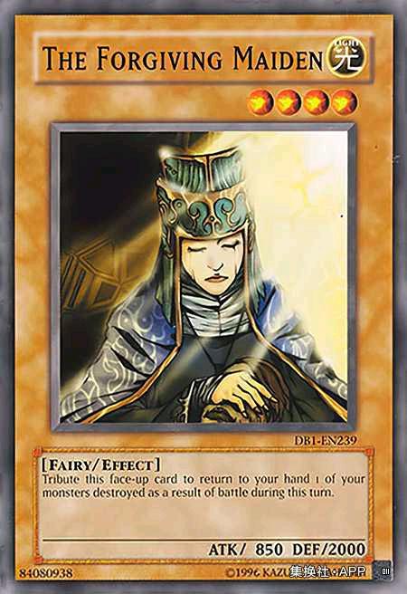 不过,即使将遗言怪回收到手卡也需要特殊召唤,很难说是投缘。即使利用送去墓地时的效果,《死者转生》也不限于被战斗破坏的怪兽,所以很容易处理。 虽然在登场当时守备力很高,但现在很难说是值得信赖的数值。因为是《圣女贞德》的融合素材,所以可以通过《融合派兵》进行招聘,可以直接使用效果。如果在《未来融合-未来融合》中指定《圣女贞德》,将《堕天使玛丽》送去墓地的话,这张卡也是必要的。