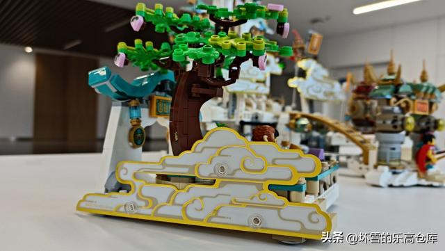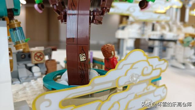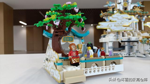 蟠桃园这儿可发生过弼马温饱餐仙桃,定身调戏仙女儿的名场面。对应的,乐高在这里也加入了很多有趣的细节。