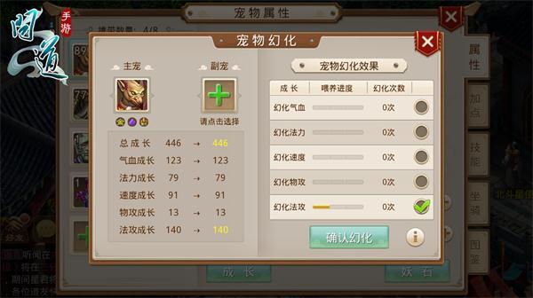 通过宠物幻化,可以极大的提升宠物的各项属性,为玩家的日常修炼和切磋带来效率的提升。