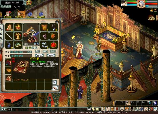 根据任务栏给的线索,我整理了一些名单,供大家参考。在开始前,先和大家说一下玩法,来到NPC附近,打开物品栏找到“拜年贴”右键使用,会弹出两个选项,第一个是没有年货提供的奖励,第二个才是NPC给我们的红包奖励。