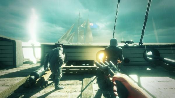 进入战斗阶段后,游戏采用FPS玩法,由于背景采用了17世纪的风帆舰船,因此游戏中的枪支武器也较为复古,比如需要不断人工修复、装弹、射击、冷却的火炮,开火速度慢精准度低的火枪,以及佩剑等近距离肉搏武器。