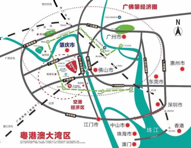 珠三角枢纽(广州)新机场,将打造成比肩广州、深圳的国际机场,距离本项目约20公里,计划于2026-2027年通航,肇庆将享便捷空运。香港-肇庆高铁已经开通,2对4趟,车程约1小时20分钟。